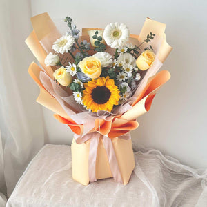 Place your flower bouquet in a cool room or shaded area. Please avoid placing your bouquet in a fridge / exposing your bouquet to direct extreme heat, ripening fruits, and direct sunlight.