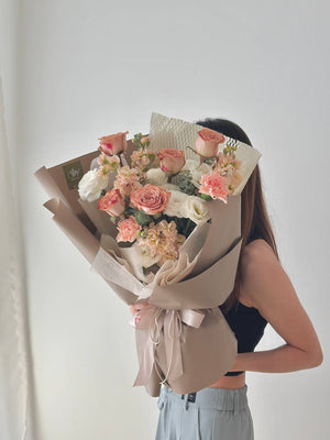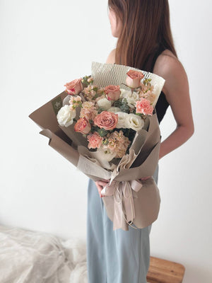 Cappuccino Rose, Carnation, Matthiola, Eustoma, Eucalyptus