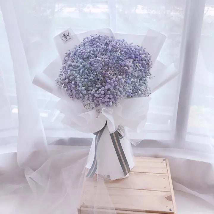 Spray puprle+blue baby breath with with wrapper.Suitable for birthday.