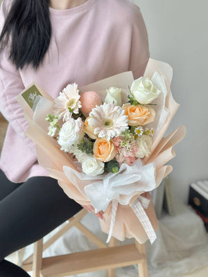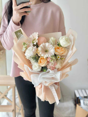 Place your flower bouquet in a cool room or shaded area. Please avoid placing your bouquet in a fridge / exposing your bouquet to direct extreme heat, ripening fruits, and direct sunlight.
