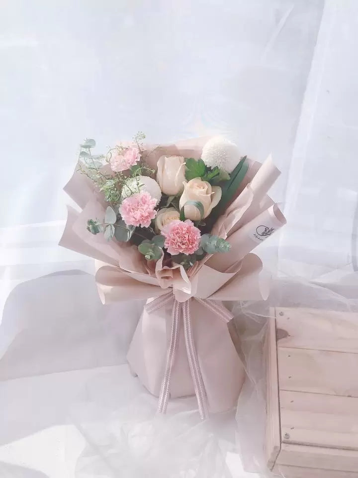 Place your flower bouquet in a cool room or shaded area. Please avoid placing your bouquet in a fridge / exposing your bouquet to direct extreme heat, ripening fruits, and direct sunlight.