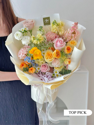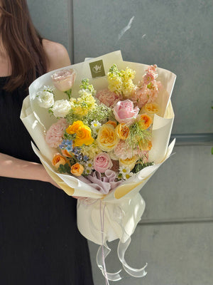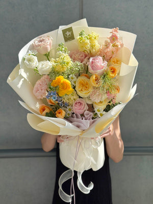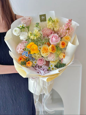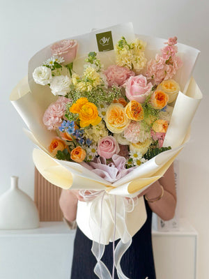 Place your flower bouquet in a cool room or shaded area. Please avoid placing your bouquet in a fridge / exposing your bouquet to direct extreme heat, ripening fruits, and direct sunlight.