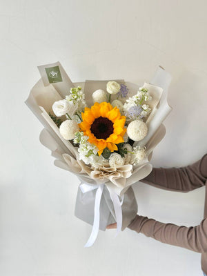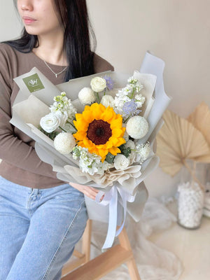 Sunflower, Ping Pong, Matthiola, Eustoma, Trachymene, Eucalyptus
