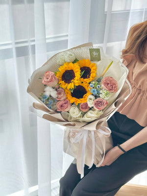 Place your flower bouquet in a cool room or shaded area. Please avoid placing your bouquet in a fridge / exposing your bouquet to direct extreme heat, ripening fruits, and direct sunlight.
