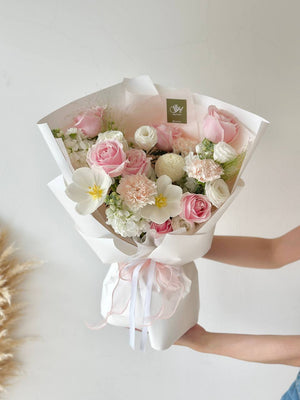 *For mixed flower arrangements, in the event that certain flowers are not available, we may substitute with flowers or foliage that are similar in style, quality and value. *Flower wrappers, ribbon colour are subject to change to a similar colour tone based on the availability.Care Tips