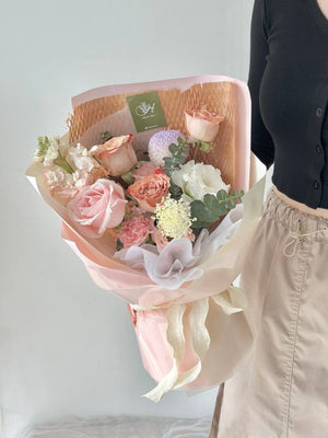 COMES WITH - Free Message Card *For mixed flower arrangements, in the event that certain flowers are not available, we may substitute with flowers or foliage that are similar in style, quality and value. *Flower wrappers, ribbon colour are subject to change to a similar colour tone based on the availability.Care Tips
