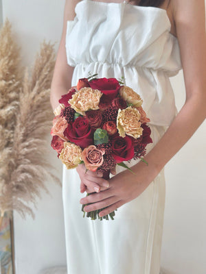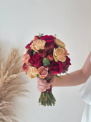 STEMS INCLUDED (Include: Red Roses, Cappuccino Roses, Skimmia, Chocolate Bubble Roses, Fillers & Leaves)