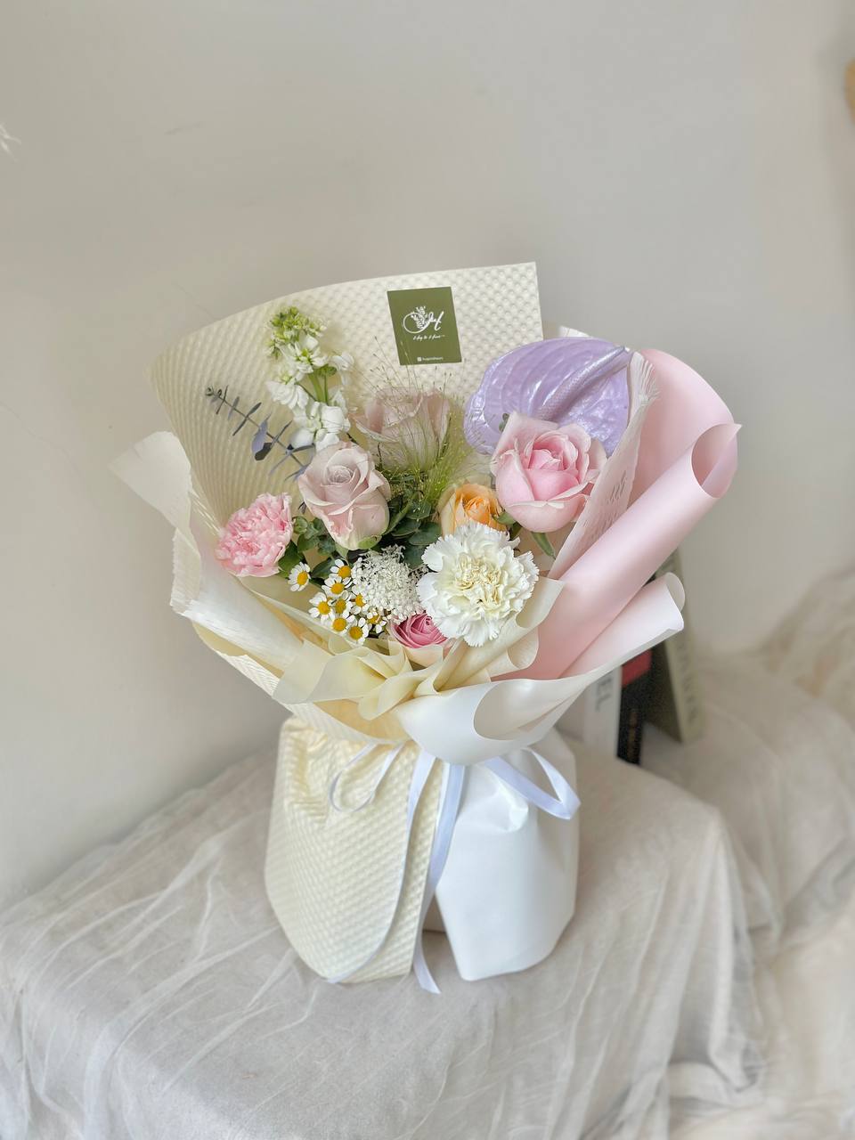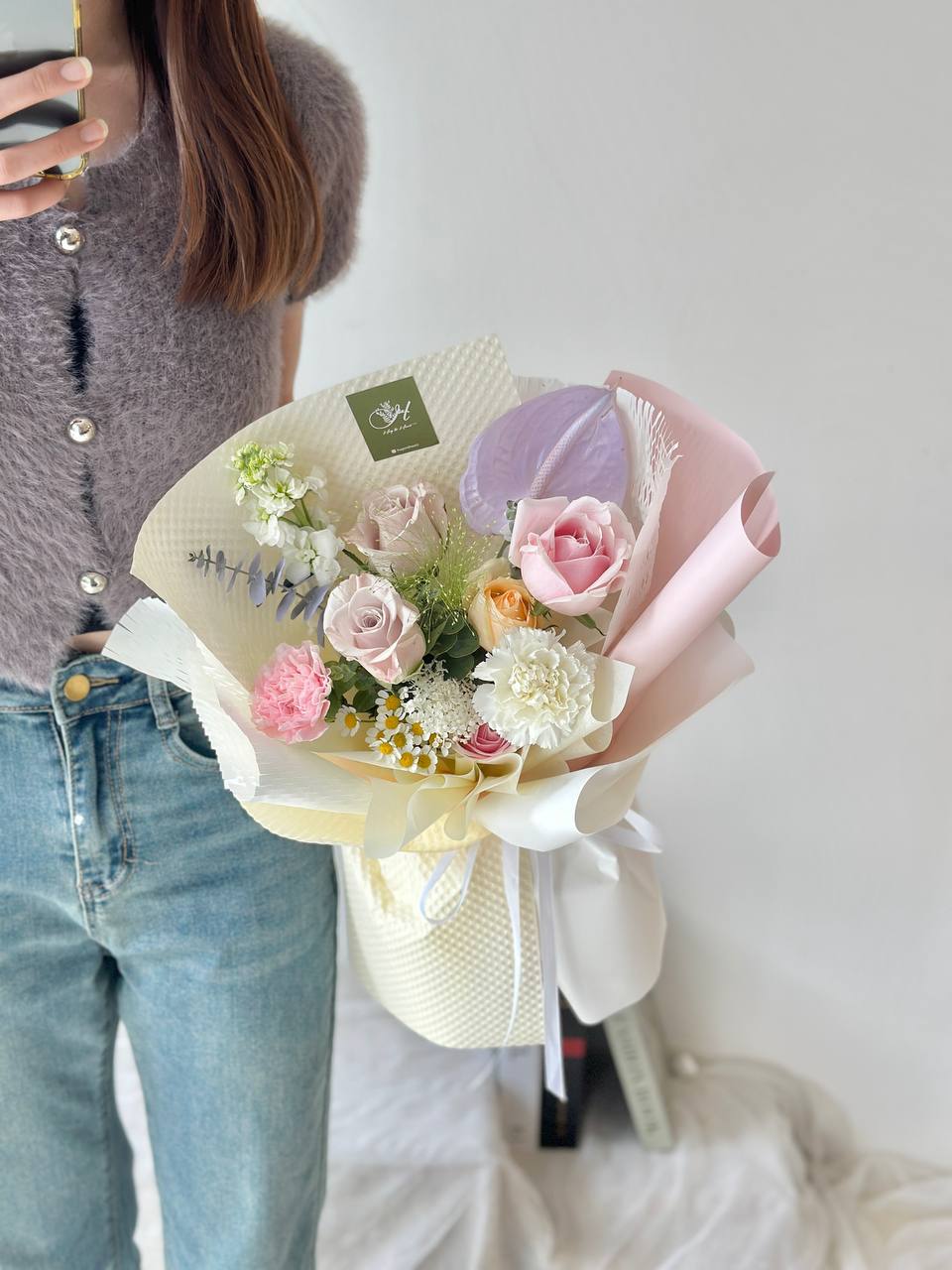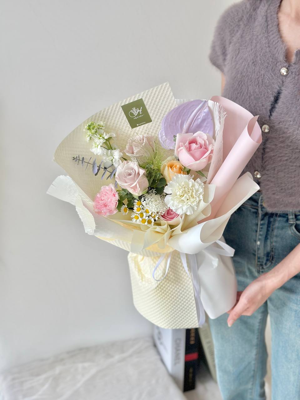 *For mixed flower arrangements, in the event that certain flowers are not available, we may substitute with flowers or foliage that are similar in style, quality and value. *Flower wrappers, ribbon colour are subject to change to a similar colour tone based on the availability.Care Tips