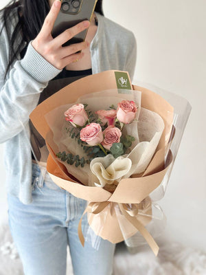 Fresh Flower: 5 x Cappuccino Rose, Eucalyptus