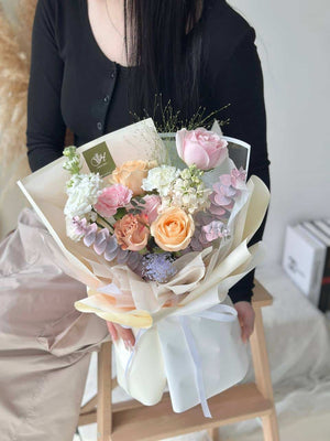 Place your flower bouquet in a cool room or shaded area. Please avoid placing your bouquet in a fridge / exposing your bouquet to direct extreme heat, ripening fruits, and direct sunlight.