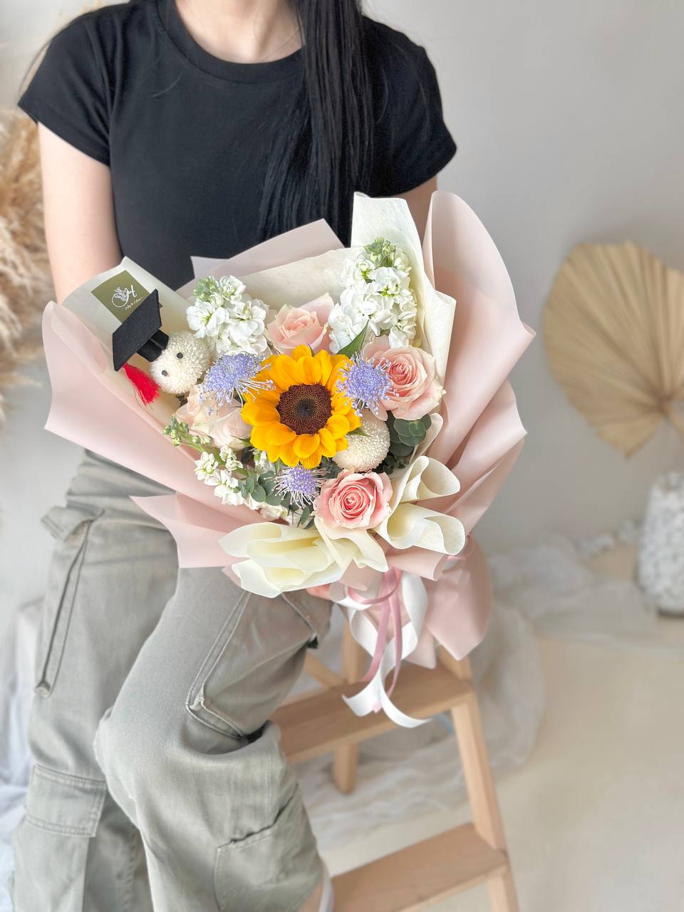 *All our products, including but not limited to flowers, wrappers and ribbon are subject to availability. *In the event that any of the product that you have ordered on our website or our Instagram account is not available, our experienced florist shall be at our sole absolute discretion to substitute any of the product to an alternate product of equal or higher value depending on availability from time to time. *We will ensure the style, theme and colours of your order is preserved.Care Tips
