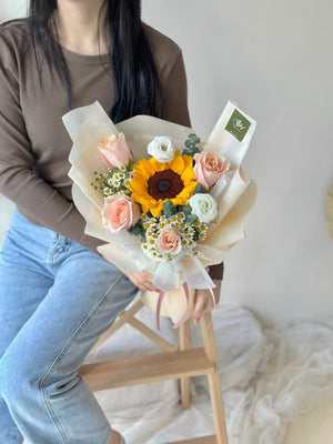 Eivor Sunflower Mixed Rose Rough Bouquet