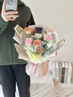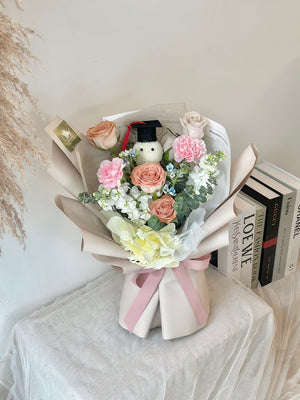 Elleric Cappuccino Rose mixed Graduation Ping Pong Bouquet