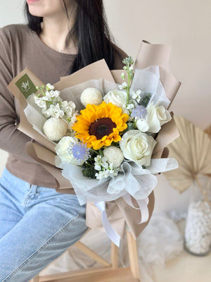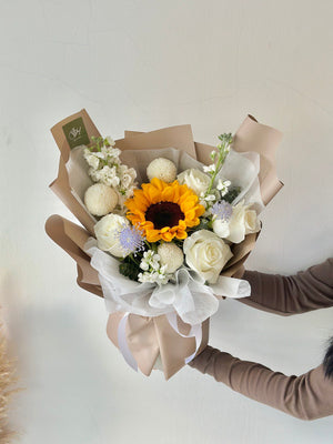 Elsworth Sunflower mixed White Rose Bouquet