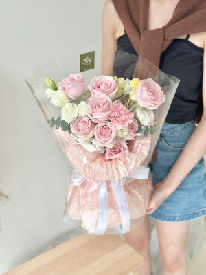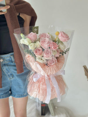 Elvio Pink Rose mixed Eustoma Round Bouquet