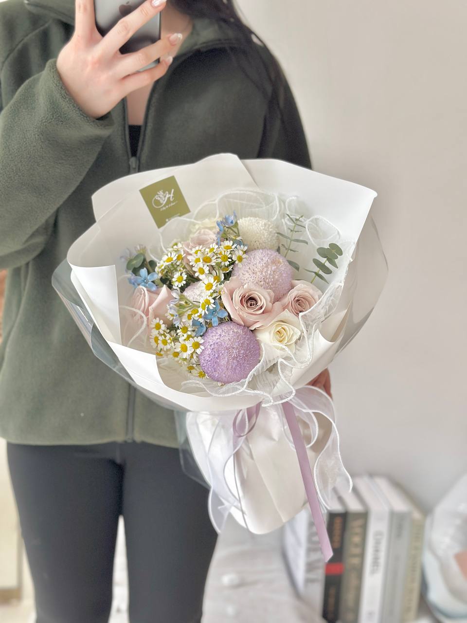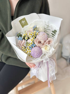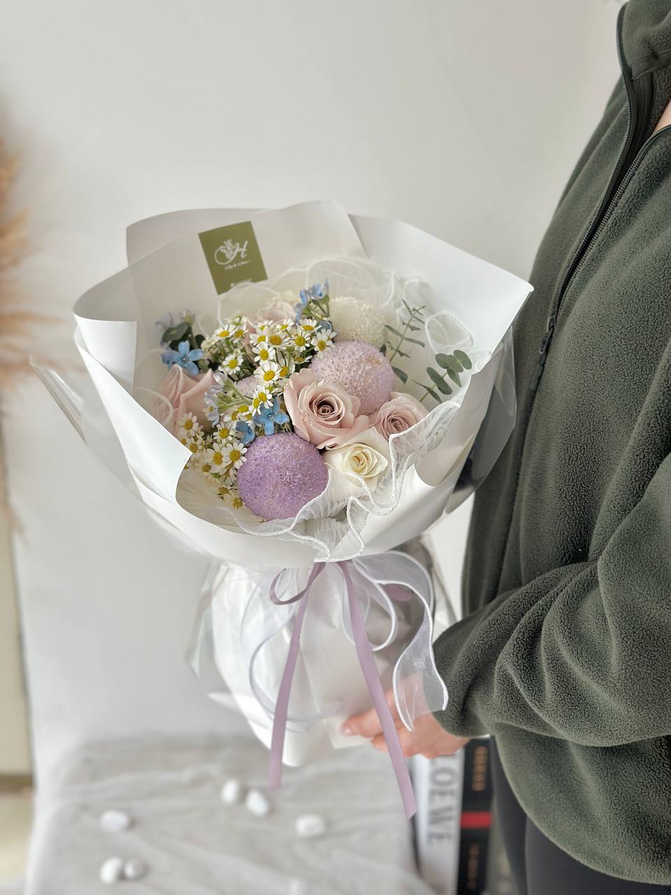 Place your flower bouquet in a cool room or shaded area. Please avoid placing your bouquet in a fridge / exposing your bouquet to direct extreme heat, ripening fruits, and direct sunlight.