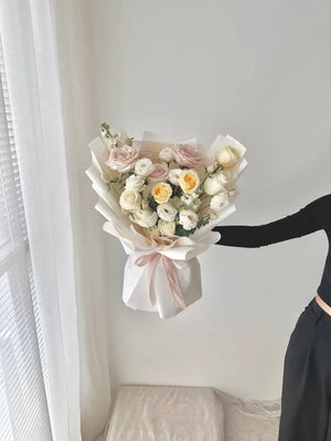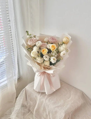 Place your flower bouquet in a cool room or shaded area. Please avoid placing your bouquet in a fridge / exposing your bouquet to direct extreme heat, ripening fruits, and direct sunlight.