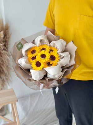 Place your flower bouquet in a cool room or shaded area. Please avoid placing your bouquet in a fridge / exposing your bouquet to direct extreme heat, ripening fruits, and direct sunlight.