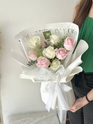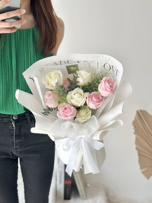 Evvie Pink mixed White Rose Bouquet