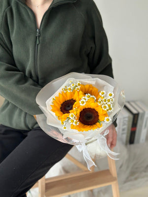 Place your flower bouquet in a cool room or shaded area. Please avoid placing your bouquet in a fridge / exposing your bouquet to direct extreme heat, ripening fruits, and direct sunlight.