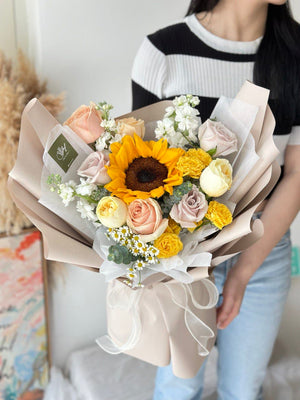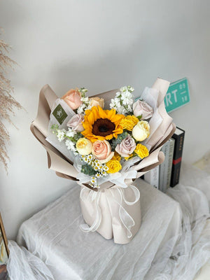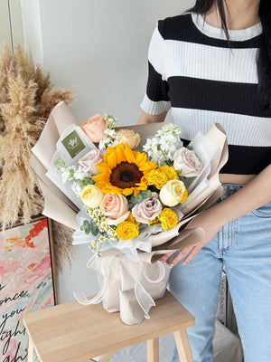 Place your flower bouquet in a cool room or shaded area. Please avoid placing your bouquet in a fridge / exposing your bouquet to direct extreme heat, ripening fruits, and direct sunlight.
