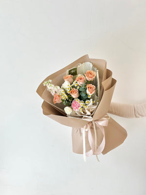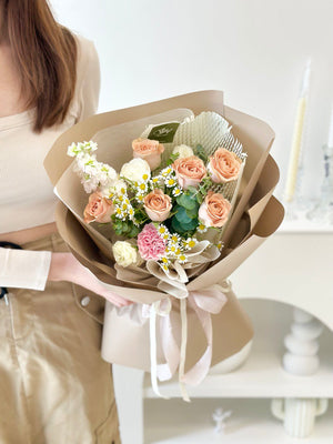 Place your flower bouquet in a cool room or shaded area. Please avoid placing your bouquet in a fridge / exposing your bouquet to direct extreme heat, ripening fruits, and direct sunlight.