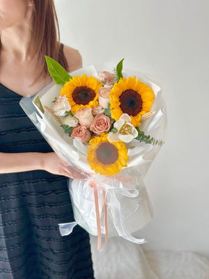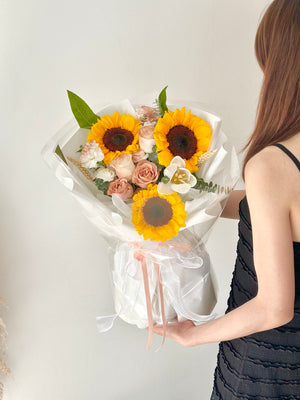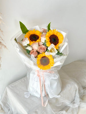 Place your flower bouquet in a cool room or shaded area. Please avoid placing your bouquet in a fridge / exposing your bouquet to direct extreme heat, ripening fruits, and direct sunlight.