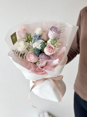 Place your flower bouquet in a cool room or shaded area. Please avoid placing your bouquet in a fridge / exposing your bouquet to direct extreme heat, ripening fruits, and direct sunlight.