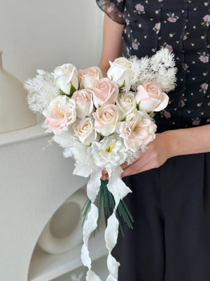 Soap Flower: 10-12 x Rose Soap Flower, 3 - 4 x White Butterfly Soap Flower Dried Asparagus Leaf