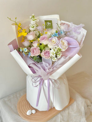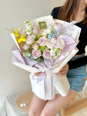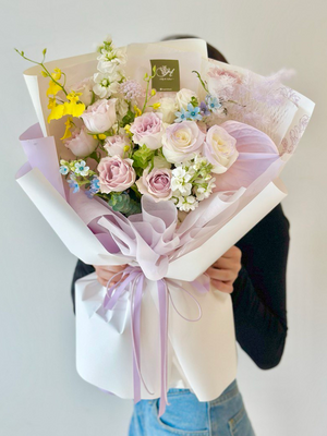 Fresh Flower: Lilac Rose, White Rose, Anthurium, Matthiola, Eustoma, Danicng Lady, Oxypetalum Blue, Ping Pong