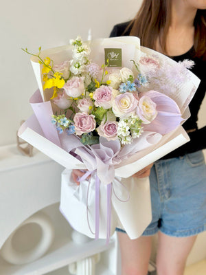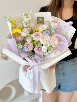 Place your flower bouquet in a cool room or shaded area. Please avoid placing your bouquet in a fridge / exposing your bouquet to direct extreme heat, ripening fruits, and direct sunlight.