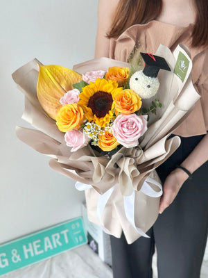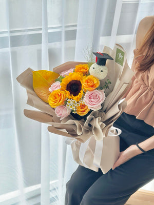 Place your flower bouquet in a cool room or shaded area. Please avoid placing your bouquet in a fridge / exposing your bouquet to direct extreme heat, ripening fruits, and direct sunlight.