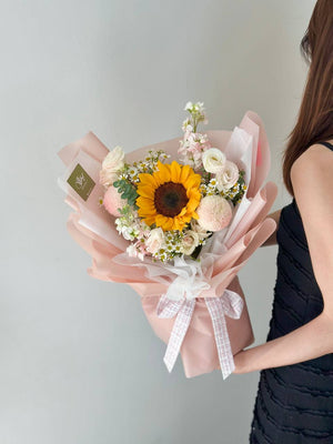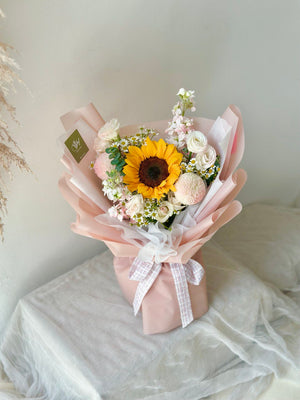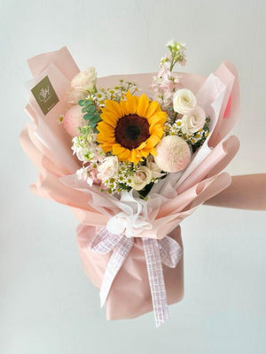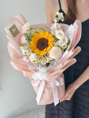 Fresh Flower: Sunflower, Ping Pong, Eustoma, Chamomile, Eucalyptus