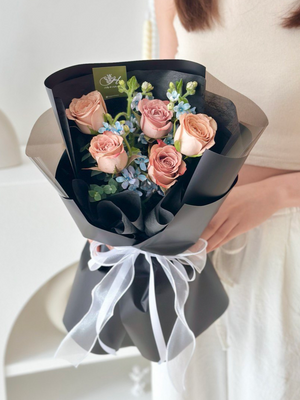 Fresh Flower: 5 x Imported Cappuccino Rose, Oxypetalum Blue, Eucalyptus