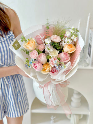 Place your flower bouquet in a cool room or shaded area. Please avoid placing your bouquet in a fridge / exposing your bouquet to direct extreme heat, ripening fruits, and direct sunlight.