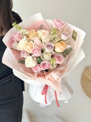 Place your flower bouquet in a cool room or shaded area. Please avoid placing your bouquet in a fridge / exposing your bouquet to direct extreme heat, ripening fruits, and direct sunlight.