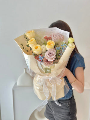 Place your flower bouquet in a cool room or shaded area. Please avoid placing your bouquet in a fridge / exposing your bouquet to direct extreme heat, ripening fruits, and direct sunlight.