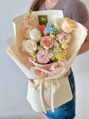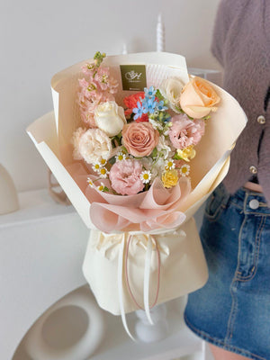 Place your flower bouquet in a cool room or shaded area. Please avoid placing your bouquet in a fridge / exposing your bouquet to direct extreme heat, ripening fruits, and direct sunlight.