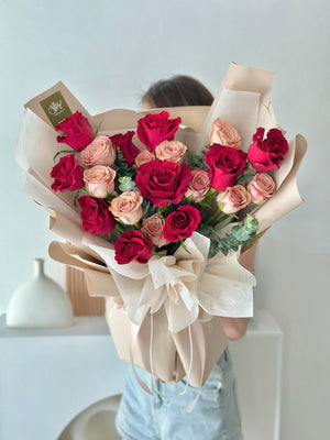 Fresh Flower: 10 x Red Rose, 10 x Cappuccino Rose