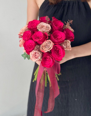 Fresh Flower: 15 - 18 x (Cappuccino rose + Red Rose), Eucalyptus Leaf