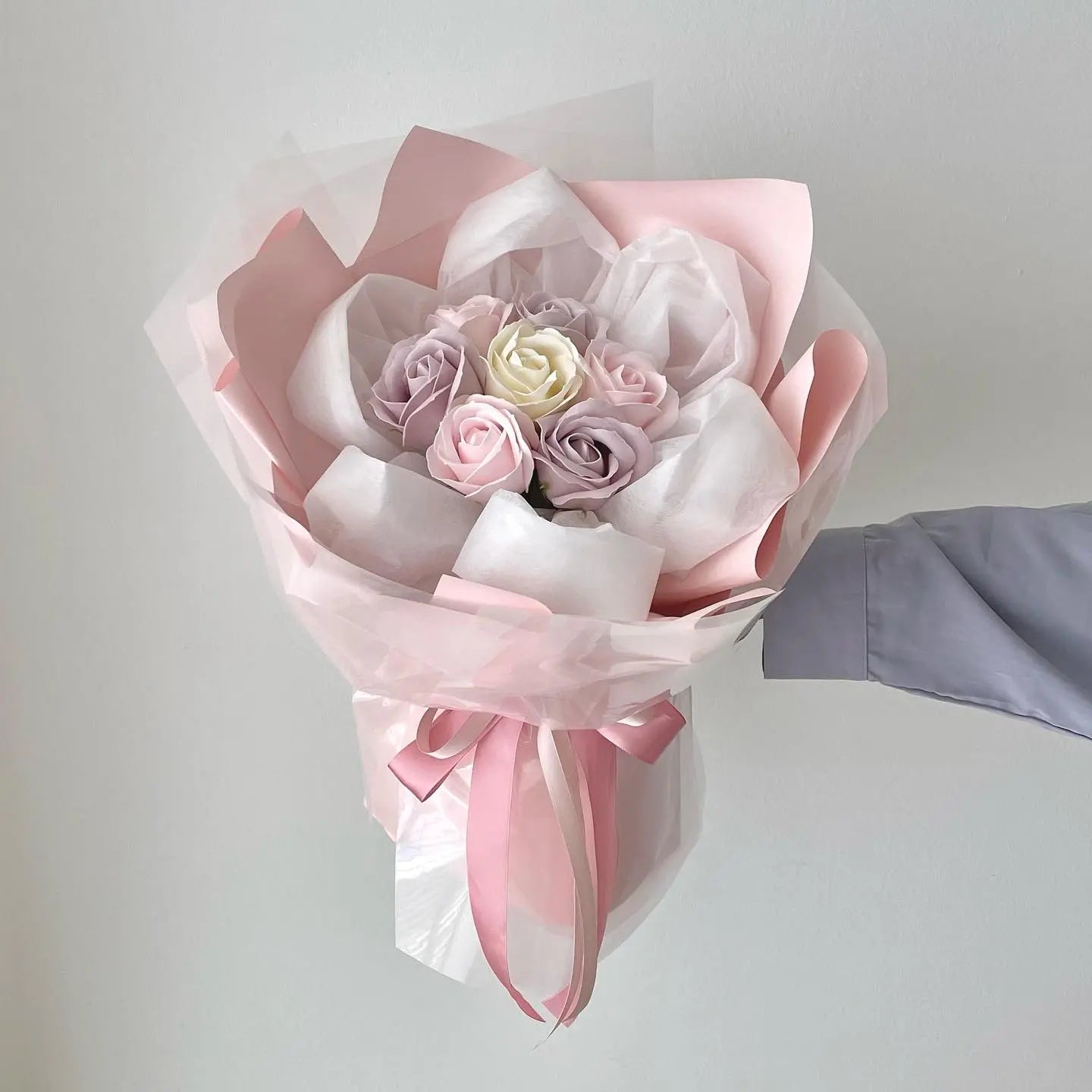 5 stalks soap roses with round shape wrapping. Suitable for birthday surprises.