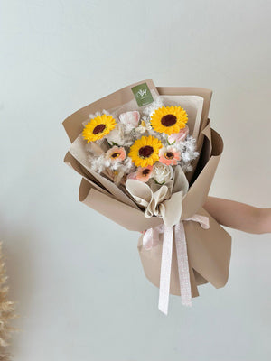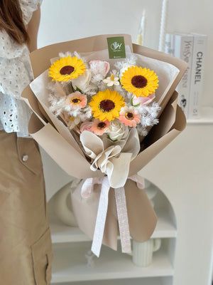 Place your flower bouquet in a cool room or shaded area. Please avoid placing your bouquet in a fridge / exposing your bouquet to direct extreme heat, ripening fruits, and direct sunlight.