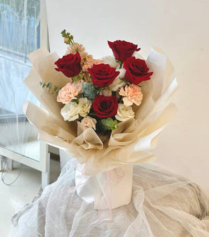 Red Rose, Carnation, Eustoma, Matthiola, Eucalyptus