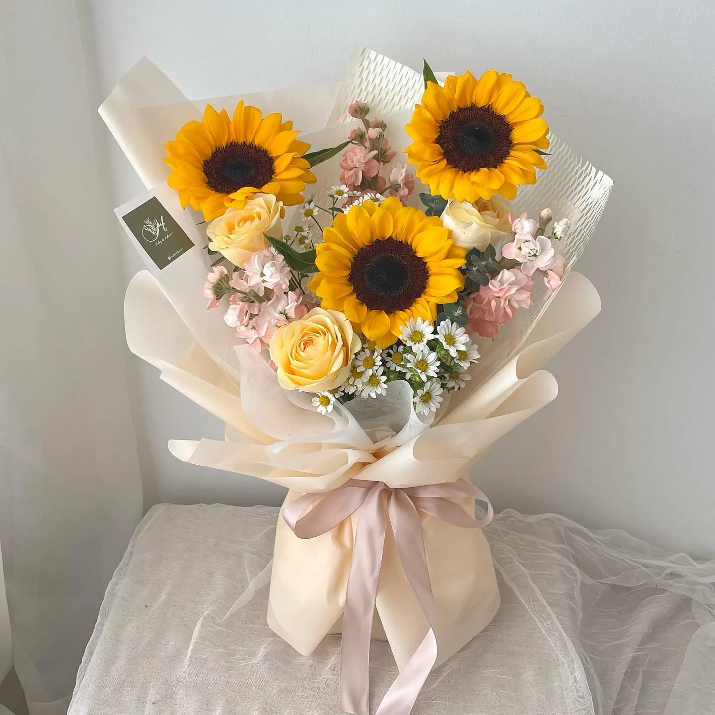 Sunflower mixed with Matthiola flowers. Suitable for graduation ir birthday surprise.