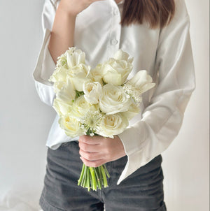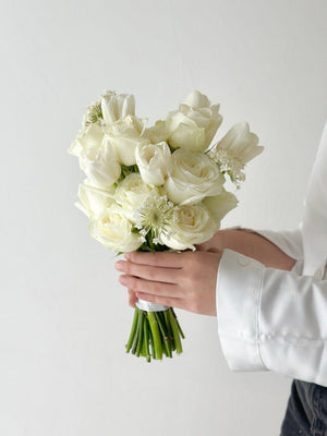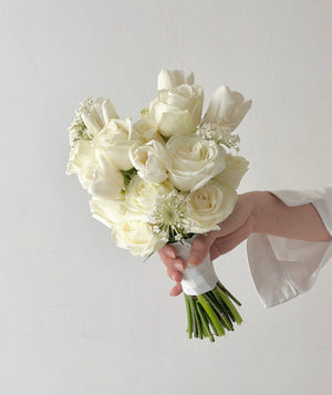 Fresh Flower: Imported White Rose, Imported White Tulip, White Trachymene Filler