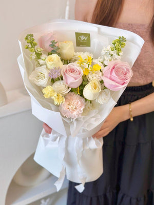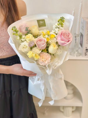 Place your flower bouquet in a cool room or shaded area. Please avoid placing your bouquet in a fridge / exposing your bouquet to direct extreme heat, ripening fruits, and direct sunlight.