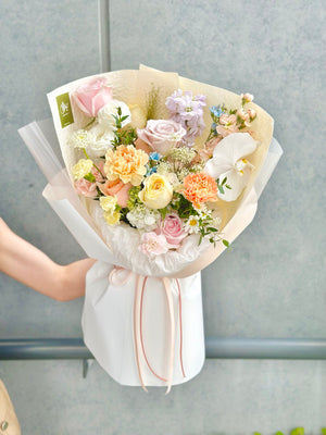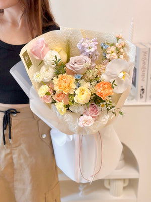 Place your flower bouquet in a cool room or shaded area. Please avoid placing your bouquet in a fridge / exposing your bouquet to direct extreme heat, ripening fruits, and direct sunlight.