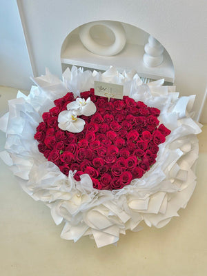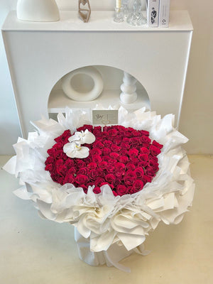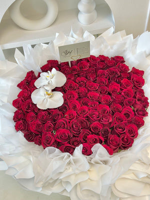 Fresh Flower: 99 x Red Rose, 2 x White Phalaenopsis