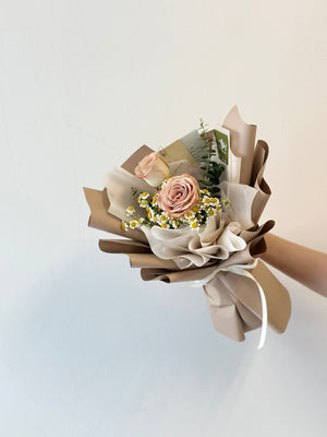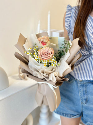 Fresh Flower: 2 x Cappuccino Rose, Chamomile, Eucalyptus Leaf
