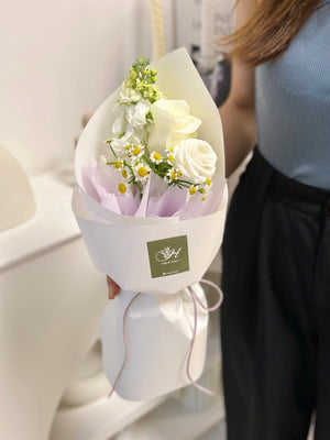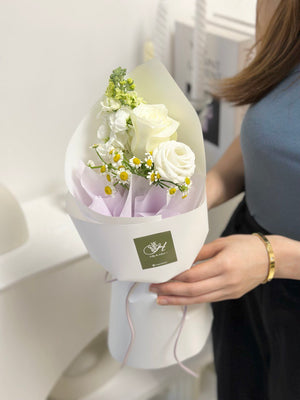 Fresh Flower: 1 x White Rose, Matthiola, Eustoma, Chamomile